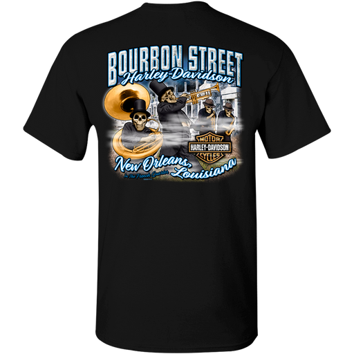Bourbon Street Harley-Davidson Cemetery Band Men's Short Sleeve T-Shirt100% Cotton
