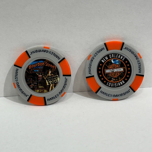 Bourbon Street H-D Official Poker Chip with Dead Rider Design. Color may vary.
