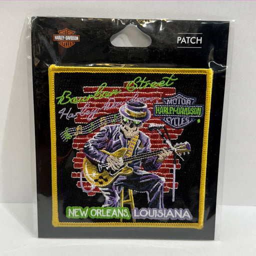 Bourbon Street Harley-Davidson Patch with Skull Musician Design.