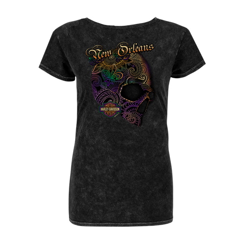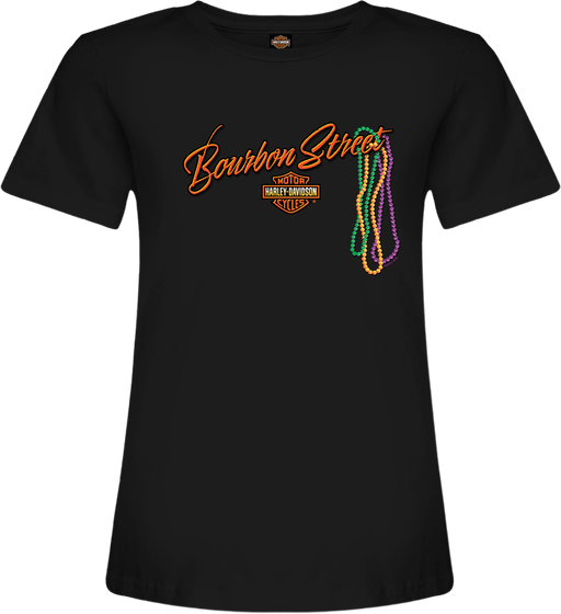 Bourbon Street Harley-Davidson Women's Short Sleeve Shirt with Proud Beads Design. 100% Cotton.