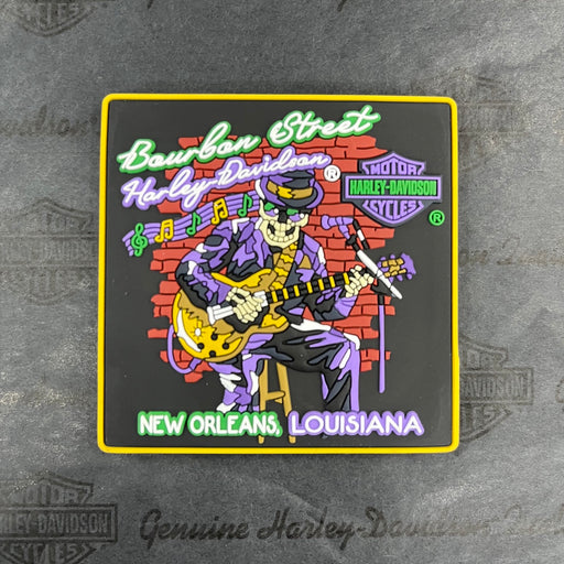 Bourbon Street Harley-Davidson Magnet with Skull Musician Design.